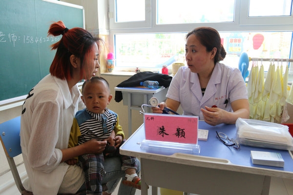 活动现场,儿科主任朱颖带领科室4名专家及眼科、口腔科专家在村幼儿园为小朋友们进行心肺听诊及视力、口腔、生长发育检查,并对急救诊治、疾病预防、家庭保健等方面知识进行了宣教指导。杨春鸿护士长为小朋友们发放了精心准备的、1000余元的儿童节礼物。义诊已到中午,仍有很多家长希望获得医疗咨询,参加义诊的医生们不辞辛劳继续与家长交流,直到最后一位家长满意离去。同时,内科、妇产科专家在村委会为当地百姓进行血压、心电、血糖检测,并针对病情提供了预防和治疗的建议及方案,到场的村民对医疗专家们认真的态度表示了称赞。