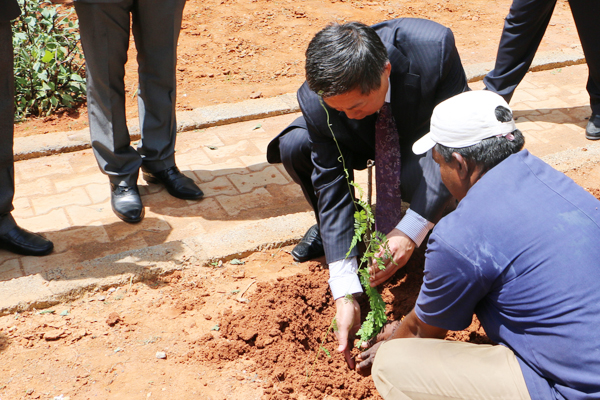 刘吉成院长栽种象征友谊的印度传统草药