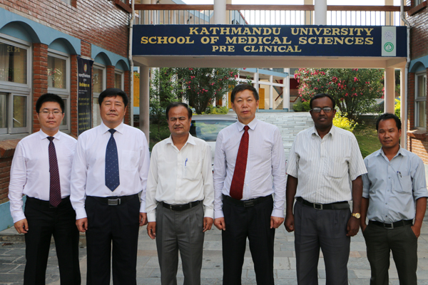 代表团访问加德满都大学期间,执行校长Ram K.M.Shrestha教授对代表团一行表示热烈欢迎,并介绍了加德满都大学近年来所取得的成就。刘吉成院长介绍了我院的历史沿革,在教学、医疗、科研等方面取得的突出成绩以及在服务社会方面作出的重要贡献,得到了对方校领导和专家的高度赞许。在友好的气氛中,双方就开展学术交流、科研合作、教师培训等方面进行了深入探讨。代表团之后参观访问了加德满都大学基础医学院,院长Ramesh Makaju博士向代表团介绍了该院招生、医学基础课程以及实验课开设情况,双方就开展合作办学、招收来华留学生等事宜进行了深入友好洽谈。代表团一行还参观了加德满都大学附属医院,并深入部分科室进行考查,医院负责人Rajeev Shrestha博士介绍了医院的整体建设与运行情况,双方就医疗与医学科研合作等事宜进行了友好洽谈并达成共识。在尼泊尔访问期间,刘吉成院长还亲切会见了部分我院尼泊尔籍留学生的家长,代表学院表达了对各位家长的问候,并表示将尽全力为尼泊尔人民培养优秀的医生。