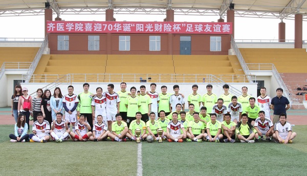6月18日,学院教职工足球队邀请哈尔滨一生联盟齐医校友足球队进行了“阳光财险杯”足球友谊赛,共贺学院70华诞。比赛前,学院89级校友、哈医大二院普外十科主任康悦博士,学院97级校友、哈医大二院心外科啜俊波医生代表齐医校友总会哈尔滨校友筹备会向学院校友总会捐资,并与学院办公室主任肖锋刚就哈尔滨校友会成立事宜进行了商讨。
