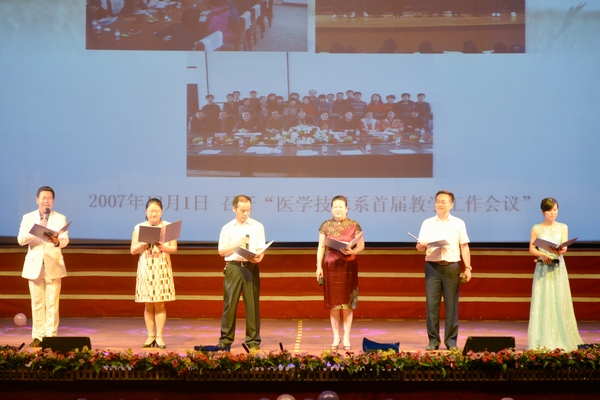 会后,与会人员共同观看了“忆十载秉烛岁月·镌医技锦绣蓝图”主题文艺汇演。医学技术学院领导班子集体登台,在音乐的伴奏下激情朗诵了《奋进的十年》,学生、教师们也用优美的舞姿、欢快的歌声为医学技术学院建院十周年献上了精美的文化盛宴。