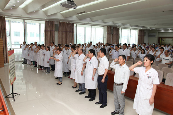 医院党委书记黄海涛在讲话中指出,附属三院爱岗敬业,无私奉献的同志很多,他们用实际行动激发了职工的工作热情与主动性,树立了附属三院的正能量。医院各部门和全体共产党员都要向这些先进集体和个人学习,努力推进党的事业和医院事业的不断前进。他强调广大党员要顾全大局,一切以医院发展的大局为重,发扬舍小家为大家的精神;广大党员要不断钻研业务,提升服务意识,坚持以病人为中心的理念,从而进一步提高医疗服务质量;广大党员要改革创新,在良好的基础条件下,全体共产党员更要在改革创新中做表率,深刻分析医改后的形势,扬长避短;广大党员要深入开展“两学一做”学习教育,以学促做,知行合一,以更加扎实的工作作风推进附属三院各项工作顺利开展,团结奋进、踏实创业,以更优异的成绩为党旗增辉。