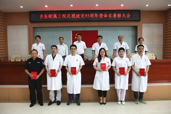 6月30日下午,附属三院召开了庆祝建党95周年暨命名表彰大会。医院党委书记黄海涛,纪检委书记、工会主席宁景志,副院长孙庆顺、李晓华、王莹出席会议,会议由副院长孙兴元主持。受表彰的先进集体和个人、党员、预备党员300余人参加了大会。