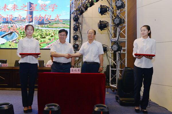 7月8日,学院教育发展基金会“同德未来之星奖学金”专项基金设立启动仪式在图书行政楼多功能厅隆重举行。捐赠立项人、学院优秀校友、北京安龙科技集团有限公司总经理王同德和学院党委副书记、教育发展基金会理事长崔光成签订了捐赠立项协议书,这是校友出资在学院设立的首个奖学励学项目。学院院长刘吉成、相关部门负责人及院本部尖子生班师生等参加了基金设立启动仪式,仪式由学科管理处处长、教育发展基金会秘书长苏江主持。