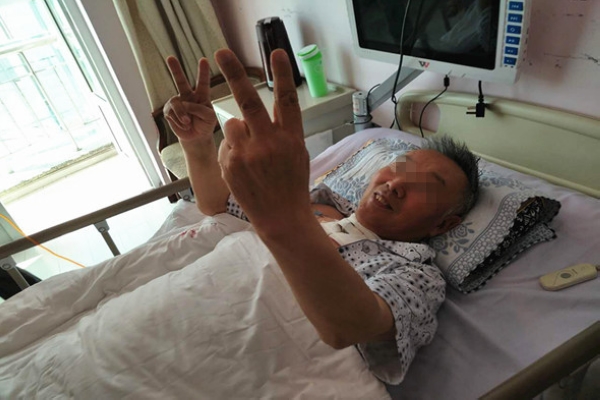 患者激动地举起双手