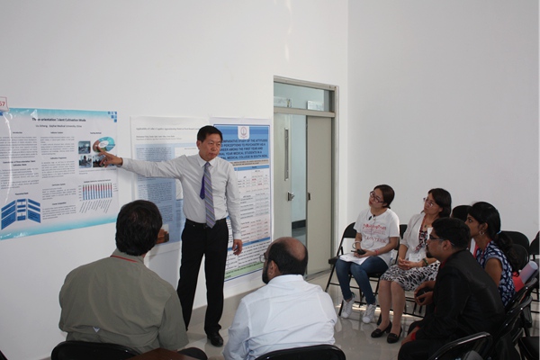 本次会议的主题为“建立信任”——一个医疗体制改革的全球挑战,来自世界各国的300 余名代表参会。会议以主题海报展示讨论、小型工作坊、小型授课式演讲等交互式方式为主。学院院长刘吉成和公共卫生学院梁玉清老师作为经大会专家评审推荐的19篇优秀论文作者代表,分别作了“以全人教育理念构建‘三导向’人才培养模式改革研究与实践”、“医学生人文素质教育现状调查与对策研究”报告,在中外专家面前展示了学院“三导向”人才培养模式及人文素质教育成果,得到中外专家的一致好评。在学术海报展示交流环节,学院院长刘吉成用全英文介绍了“Three-orientation Talent Cultivation Mode”(“ 三导向”人才培养模式),并同国外代表进行亲切交流。同时,他还和张晓杰副院长参与了英文专题小组讨论。
