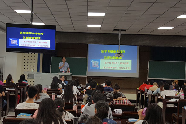 9月2日、9月5日,附属一院团委分别邀请西安师范大学王国清教授、北大医学部徐净教师,针对学生关心的英语学习和西医综合备考等进行了专题讲座。医院的两届学生及青年医生踊跃参加,六楼学生教室座无虚席。