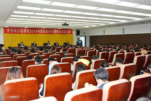 会上,学院工会主席何宪坤宣读了《齐齐哈尔医学院关于命名表彰2015-2016学年度先进集体、先进个人的决定》,共有44个先进集体和118个先进个人受到了大会表彰。随后,受表彰先进集体和先进个人代表上台领奖。