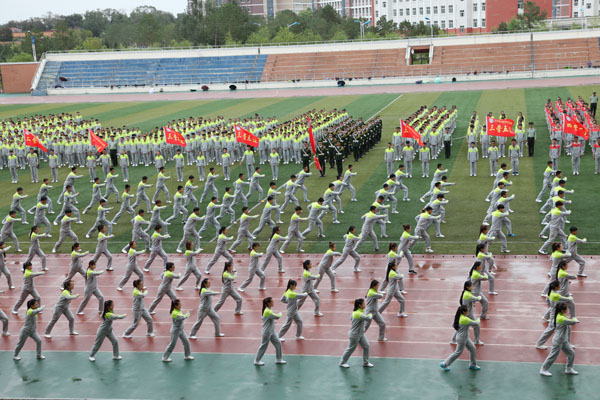 9月9日下午,学院在体育场隆重举行了2016级新生开学典礼暨军训总结大会。学院领导刘吉成、崔光成、王晓星、张晓杰、何宪坤及2016级学生军训承训部队首长出席大会,武装部、教务处、学生工作部、团委、宣传统战部、学院办公室等部门负责人,各二级学院党政负责人,附属第一、二、三医院、朝聚眼科医院院长及全体2016级新生参加了大会,大会由学院党委副书记崔光成主持。