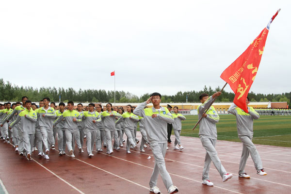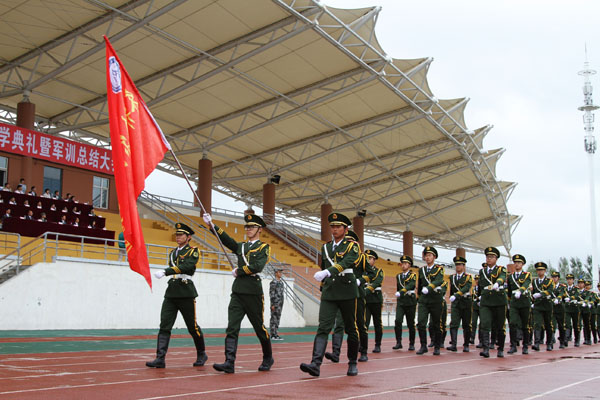 军训团政委、学院副院长王晓星作军训总结,他指出,经过承训部队和学院职能部门的密切合作,以及部队教官和广大师生的共同努力,克服了天气原因和场地因素的限制,2016级新生军训工作实现了预期目标,取得了圆满成功。他代表学院对承训部队及官兵表示衷心感谢和崇高敬意,对2016级新生圆满完成“大学第一堂课”表示祝贺,希望2016级新同学把在军训中学到的组织纪律、团队精神和优良作风继续发扬光大,把军训的收获和体会作为今后成长成才的精神动力,珍惜时光、刻苦学习,展现齐医昂扬的精神风貌和新时期大学生积极进取的精神追求,在美丽的齐医实现自己的青春梦想。