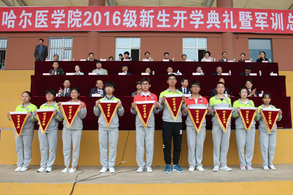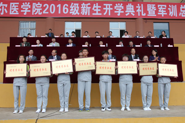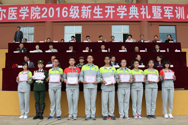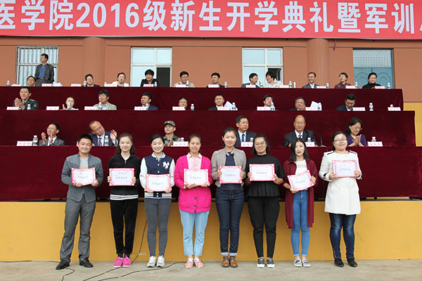 军训总结大会后,新生开学典礼正式开始,典礼由学院副院长张晓杰主持。典礼上,2016级全体新生庄严宣誓,要为祖国医药卫生事业的发展和人类身心健康奋斗终生。