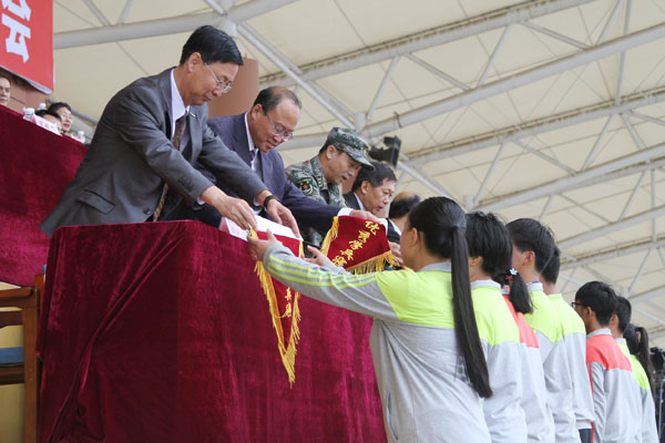 分列式和军训团表演结束后,学院院长刘吉成向承训部队赠送了牌匾,武装部部长尚天歌宣布了军训评比结果。此次军训共评选出“优秀学兵连”8个、“优秀学兵寝”51个、“优秀学兵”243人、“优秀指导员”8人,学院领导和部队首长为获奖人员颁发了奖牌和证书。