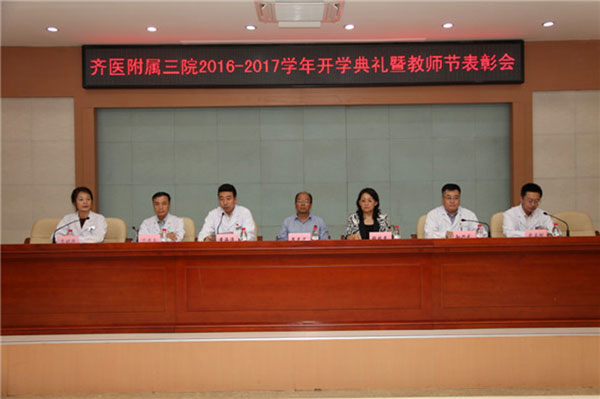 9月7日下午,附属三院2016-2017学年开学典礼暨第三十二个教师节表彰大会在医院门诊综合楼四楼报告厅举行。学院党委副书记崔光成、副院长张晓杰出席会议,附属三院党委书记黄海涛、副院长孙兴元、纪检委书记、工会主席宁景志、副院长李晓华、武立刚、各教研室负责人、教师代表及2013级口腔、临床及妇产专业全体学生参会。会议由附属三院党委书记黄海涛主持。