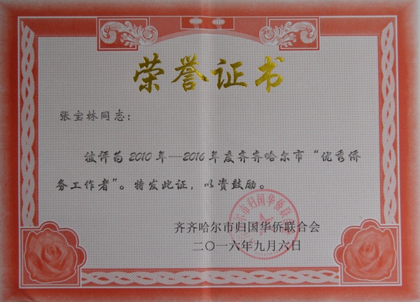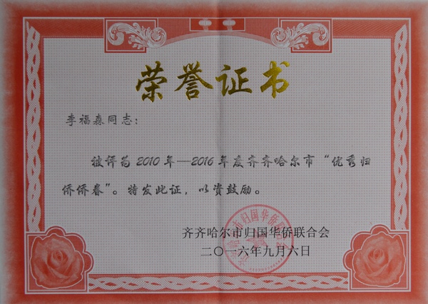 9月6日,齐齐哈尔市第七次归侨侨眷代表大会召开。会上,学院侨联荣获“齐齐哈尔市侨联系统先进集体”称号,宣传统战部部长张宝林荣获“齐齐哈尔市侨联系统优秀侨务工作者”称号,学院侨联主席李福森荣获“齐齐哈尔市优秀归侨侨眷”称号。会上,学院侨联主席李福森当选为齐齐哈尔市侨联第七届委员会常委,精神卫生学院付伟当选市侨联第七届委员会委员。
