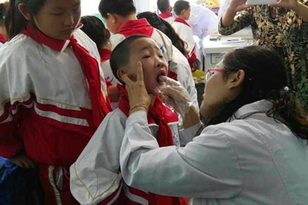 9月20日上午,口腔医学院又选派党员韩龙、许远志,张欣等知名医师组成医疗队,在医院门诊综合楼阳光大厅进行了现场咨询、宣传义诊、免费建立病历档案等系列公益活动。同时口腔医学院还选派多名医生到铁锋区第五小学为同学们宣传牙病的相关知识,受到了师生们的热烈欢迎,在愉快的氛围中同学们不仅知道了牙齿的重要性,还了解了日常生活中口腔护理的小知识,学会了怎样正确刷牙,怎样爱护自己的牙齿。