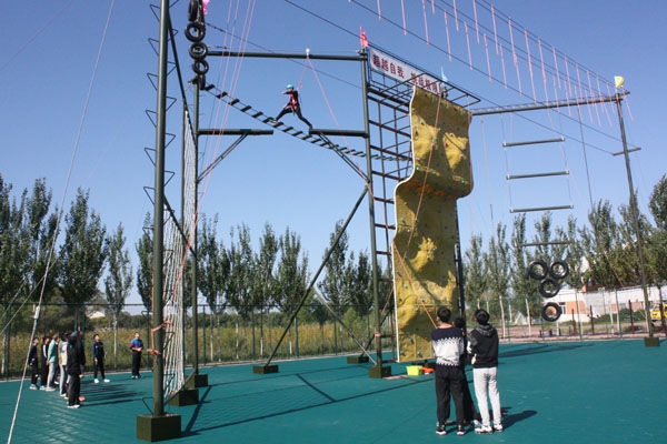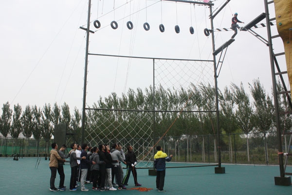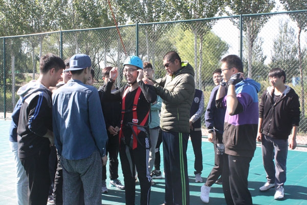 为了保证拓展训练教学的顺利开展,体育教研部利用暑假时间,选派四名教师,进行了多个拓展项目的培训工作。参训教师熟练掌握拓展训练项目的基本培训方法、技能及相关安全操作后,面向2015级学生开展了空中单杠、空中断桥、天梯滑降、信任背摔、攀岩等项目的教学。
