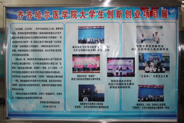 “大众创新,万众创业”,双创号角响彻龙江大地。乘着双创的东风,学院结合双创工作的特色和实际,于10月17日—21日,在教学楼主楼北区举办了大学生创新创业项目展。