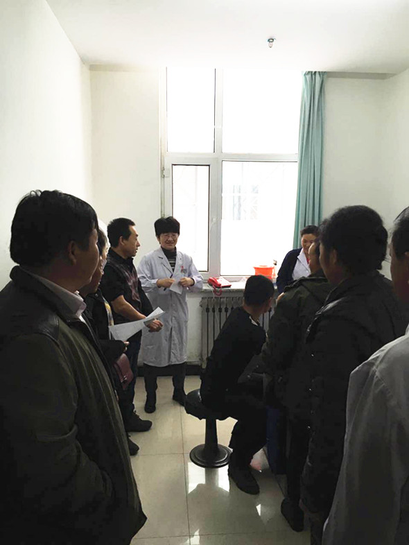 神经内六科蒋丽艳主任、普外一科郝建军副主任、眼科张雷鸣医生在门诊接诊,使扎兰屯市群众在当地就能享受到专家门诊。肾内科马增伟主任对血透室仪器布局、血透病人的管理进行了指导,并详细介绍了附属三院已开展但当地未开展的腹膜透析和结肠透析技术;心内四科沈彦祥主任现场查房诊治疑难病人并介入治疗;义诊当天适逢下雪,摔伤的患者多,骨外二科田少华主任为多位患者打石膏并进行了现场教学。