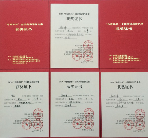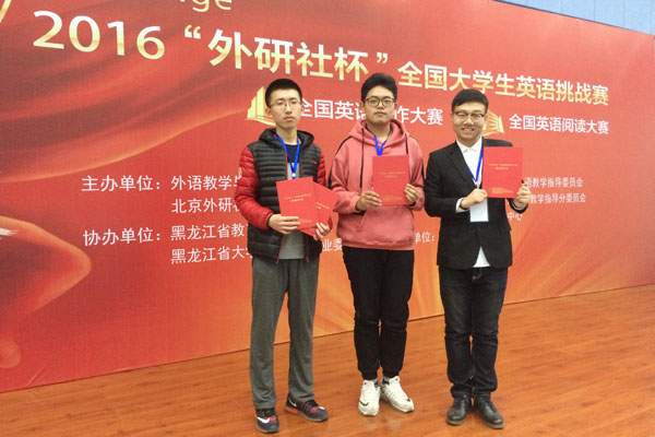 10月29日,2016“外研社杯”全国英语写作/阅读大赛黑龙江复赛在哈尔滨华德学院举行。来自我省各高校包含专业英语的148名佼佼者参加了复赛。经过激烈角逐,口腔医学院2014级学生周志伟凭借扎实的英语写作功底在强手如林的参赛选手中排名第10,获得写作大赛二等奖,基础医学院2015级姜兆伟同学获得三等奖;在阅读大赛中,基础医学院姜兆伟同学和曹玓同学均荣获三等奖。