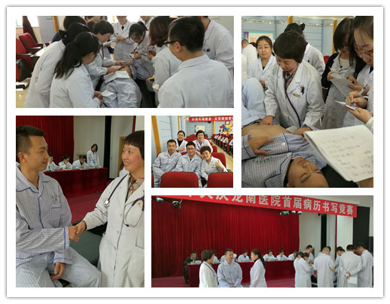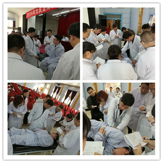 当天,火热的赛场上有评委、有专家、有选手、还有两位顶级入戏的“老”患者,啥病都能“演绎”,他们就是大五学生张瑞明和宫鑫磊。现场老师们认真严细的查体,竞赛选手奋笔疾书的记录,“患者”声情并茂的对答如流。这状态、这表情,是在竞赛吗?以为是真的查房呢!选手是一批批的查患者,担当患者的两位学生,一会肺炎、一会阑尾炎、转眼间又患上了骨折,虽然“装病”很辛苦,但学生们们觉得当“患者”很受益,换位思考,历练技能,也是很好的理论与实践相结合的机会!