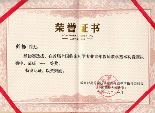 学院多年来一直高度重视教师教学能力的培养,药学院始终坚持并鼓励教师探索创新教学方法,将PBL、讨论式教学、翻转课堂、情景教学等现代化教学理念和手段应用于理论和实践教学中,鼓励并支持教师参加教学改革学习班、研讨会,坚持组织青年教师基本功竞赛等,使药学院整体教学水平及教学质量不断提高,多位青年教师在校级、省级、国家级比赛中获奖。刘畅及宋娟老师在本届大赛中的优异成绩不仅充分展示了学院青年教师的教学水平及教学能力,更为学院争得了荣誉,更好地推动了青年教师教学水平的提高。
