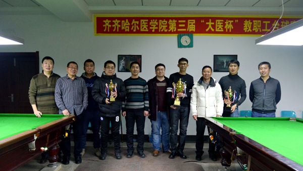 台球这项在国际上广泛流行的高雅室内体育运动,受到越来越多教职工的喜爱和参与。赛场上,队员们以规范的动作、华丽的球姿、精湛的球技、严密的防守赢得了现场观众的阵阵掌声。经过一天激烈的角逐,最终,教联一队摘得了团体比赛的桂冠,机关一队获得亚军,教联二队获得季军;在个人项目比赛中,教联一队的刘磊、教联二队的陈云辉、附属三院的刘岩、教联二队的徐涛、机关一队的张威分别获得个人比赛前五名。