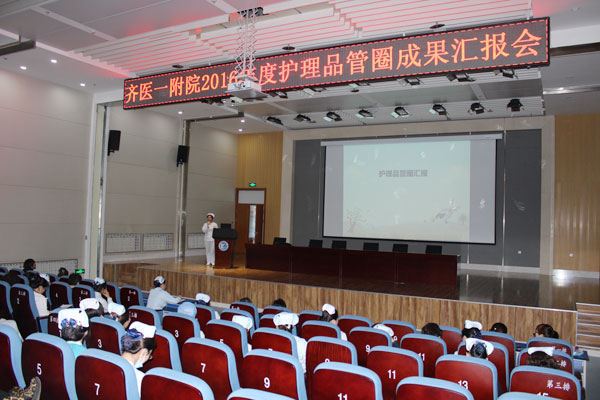 为进一步推进医院护理质量管理发展,提升优质护理服务水平,实现“小品管、大质量”的管理,附属一院护理部于2016年年初,启动了“护理品管圈”活动。通过一年的活动落实,初显成效。11月29日下午,首届品管圈成果汇报会在医院学术报告厅举行。附属一院纪检委委书记马月华、副院长李兴江、相关职能科室负责人和全院护士长参会,汇报会由护理部主任范桂红主持。