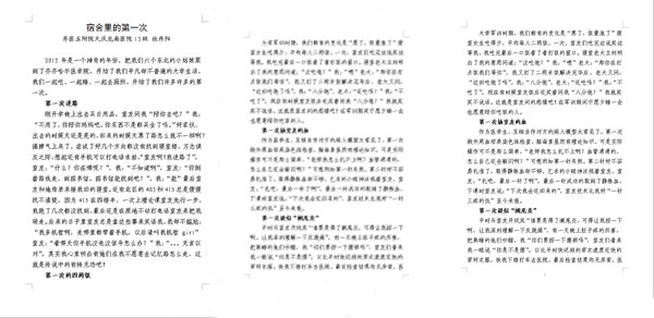 学生们的征文内容体现了丰富多彩的大学生公寓文化生活,反映了寝室成员之间团结互助的亲情、友情,讲述了身边的好事、乐事、趣事,语言流畅,内容充实,文字精炼,思想积极向上,有真情实感。
