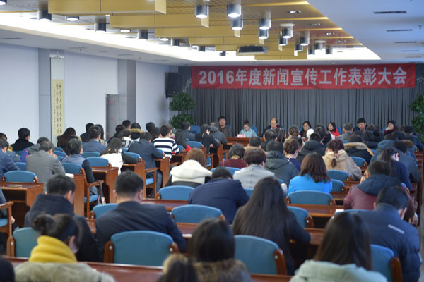 12月21日下午,学院在图书行政楼1801会议室召开了2016年度新闻宣传工作表彰大会。学院党委副书记崔光成、副院长张晓杰、团委书记马倩、现代教育技术中心主任张淑玮、学生工作部部长宋耀新、宣传统战部部长张宝林、副部长刘柏人等在主席台就坐。各基层党委、总支书记,各单位、部门负责人,各二级学院办公室和辅导办主任,附属医院宣传科全体人员,全体通讯员和大学生记者参加了会议,会议由宣传统战部部长张宝林主持。