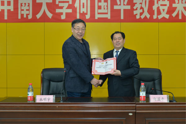 学院副院长丛明宇为何国平教授颁发聘书