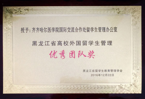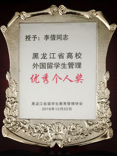 12月22日,学院国际交流合作处3名代表参加了2016年黑龙江省留学生教育管理学会年会。根据学会评审,学院国际交流合作处留学生管理办公室荣获黑龙江省高校外国留学生管理优秀团队奖,李倩同志荣获留学生管理优秀个人奖。
