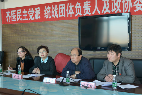会上,民盟市委常委、市政协委员张春庆、九三学社齐医学院基层委员会主委白丽、农工党齐医学院支部主委祁艳波、民进齐医学院支部主委卢长方、民革齐医学院支部主委马文辉、党外知识分子联谊会会长夏春辉、学院侨联主席李福森分别对2016年工作进行了总结,并介绍了2017年工作计划。宣传统战部部长张宝林传达了全省高校统战工作会议相关精神,全面总结了学院党委2016年统战工作,并对2017年统战工作进行了详细部署。座谈中,还向各民主党派负责人、侨联负责人、党外知识分子联谊会负责人以及政协委员征求了意见。