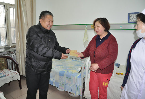 1月13日下午,附属二院党委书记丁国旭、离退休办主任王宏光等一行4人走访慰问了董玉璞、赵漱箴等7位离退休老干部,并为其送上了慰问金。
