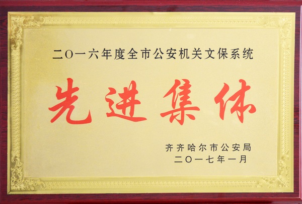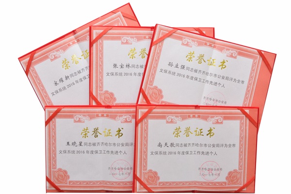 近日,齐齐哈尔市公安局对2016年度全市47个文保系统列管单位先进集体和111名先进个人进行了命名表彰,学院荣获“2016年度全市公安机关文保系统先进集体”称号,学院副院长王晓星、保卫处处长尚天歌、副处长孙立强、学生工作部部长宋耀新、宣传统战部部长张宝林5名同志被评为“先进个人”。