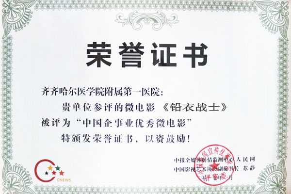 近日,由中报全媒体舆情监测中心等部门开展的2016年度“中国优秀微电影”征评活动结果揭晓,由附属一院职工自编、自导、自演的微电影《铅衣战士》荣获“中国企事业优秀微电影”殊荣。