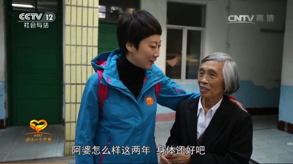 中央电视台《今日说法》《热线12》栏目主持人元元与特教学校创办人胡惠月老人交流