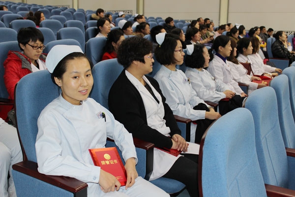 3月7日下午,附属一院“三八”妇女节庆祝表彰大会在内科综合楼学术报告厅举行。医院党委书记胡凯、纪检委书记马月华出席会议,并为 “优秀女职工”代表颁奖,工会副主席孔祥丽主持会议。会上,党委书记胡凯宣读命名表彰决定,纪委书记马月华为78名获奖女职工代表颁发了证书。会后,医院为全院女同胞们播放了视频短片《生命的美丽》和最新电影《情圣》。电影播放期间,工会为女职工组织了幸运抽奖活动,共计抽出36项奖品,活动现场热情高涨,笑声连连。