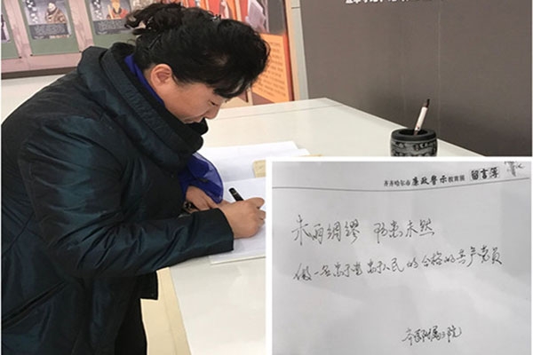 党员代表在留言簿上留言