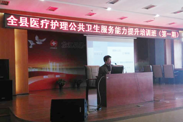 3月20日,龙江县卫计局举办的“全县医疗护理公共卫生服务能力提升培训班”第一期正式开班,附属一院党委书记胡凯带领医务科科长谭丽娜、护理部主任范桂红及感控科科长马颖秋,应邀为龙江县所有二级医疗机构的300余名医护人员进行了集中培训。