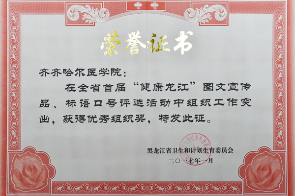 全省首届“健康龙江”图文宣传品、标语口号评选活动由省卫生计生委主办,旨在大力推进“健康中国”建设,继续深入开展“健康龙江行动”,调动广大基层卫生计生宣传人员创作优秀宣传作品的积极性,进一步增强正面宣传效果。接到活动通知后,学院认真组织策划,广泛宣传发动,各附属医院积极选送集思想性、艺术性、实用性为一体,贴近基层、贴近生活、贴近群众的优秀作品,展现了学院卫生计生从业人员的人文精神。学院将珍惜此次荣誉,再接再厉,继续创作出更多更好的作品,为推动“健康龙江”建设,实现“健康中国梦”做出新的、更大的贡献。