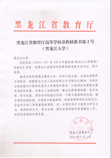 黑龙江省教育厅高等学校章程核准书第14号(齐齐哈尔医学院).doc