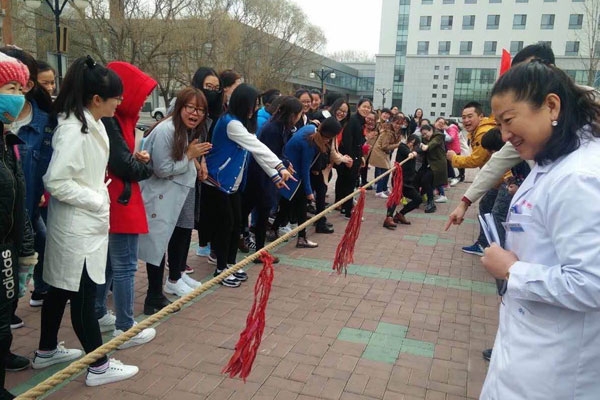 为丰富学生的精神文化生活,增强学生之间的凝聚力,4月7日,附属一院学生科组织学生开展了春季拔河比赛。