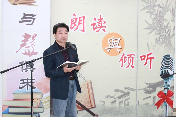 4月20日,在世界读书日到来前夕,附属一院党办、工会、宣传科与杏林文学社联合举办了“朗读与倾听”活动,14位朗读者以真挚的感情朗诵了经典作品。医院党委书记胡凯、纪检委书记马月华出席活动,富拉尔基区宣传部副部长许长林、梅里斯区文联主席冯好平、昂昂溪区文联主席张湘麟应邀参加朗读活动。