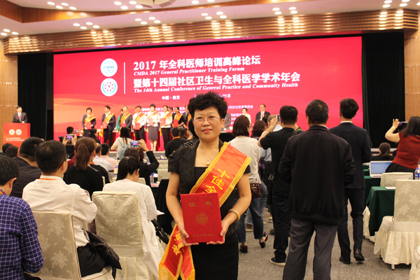 4月20日,2017年全科医师培训高峰论坛暨第十四届社区卫生与全科医学学术年会在南京召开。附属五院作为全国住培基地的后起之秀受邀参加年会,同时,附属五院龙新社区的罗秀荃主任,荣获“十佳全科专业基地管理者”的重量级荣誉,是东三省唯一一家获此殊荣的住培基地。