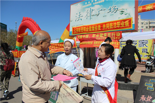 为了保障劳动者的职业健康权益,4月28日,附属一院体检科与社区卫生服务中心医务人员到哈客隆法律广场,向广大市民宣传预防和控制职业危害、保障劳动者职业健康权益相关知识。