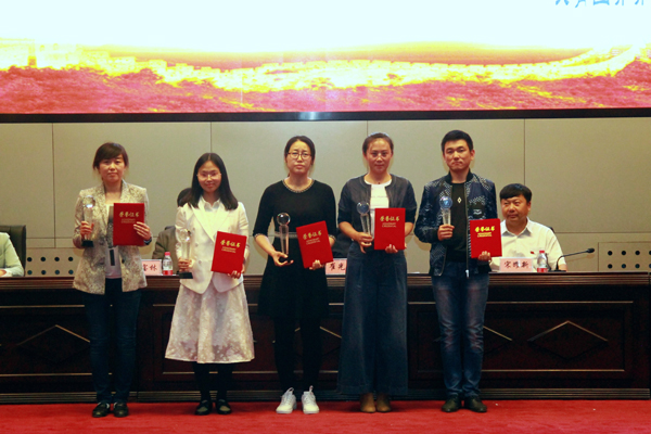 受表彰集体和个人代表上台领奖