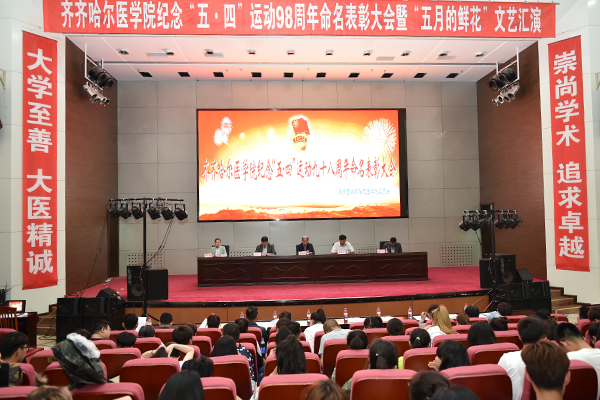 学院党委副书记崔光成代表学院党委向全院青年团员以及广大团干部致以节日的问候,并向受到表彰的集体和个人表示祝贺。他说,五四运动是推动中国历史进步的一座丰碑,是中国青年运动的一面旗帜,广大齐医青年要在党的领导下,在五四精神的感召下,始终走在时代前列,勇担历史使命,将来报效祖国。崔光成副书记在讲话中回顾了过去一年学院取得的突出成就,对学院各级团组织以及广大青年团员在学院发展过程中发挥的积极作用给予肯定,并提出了具体要求。他强调青年学生要以德为先,重视高尚品德的自我养成,不断提升自身道德素养;要勤奋学习并注重参加社会实践,在实践中丰富自己、完善自己、锤炼自己,提升个人综合素质;各级团组织要不断创新工作机制,紧紧围绕学院“三导向”人才培养目标,研究各项学生活动规律,充分发挥学生活动的育人作用,服务青年成长成才。