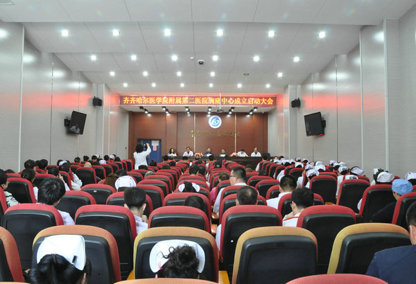 5月3日,附属二院在临床技能中心一楼多功能厅举办了胸痛中心成立启动大会暨揭牌仪式。哈医大二院心血管病院院长于波教授应邀莅会并讲话,医院党委书记丁国旭致辞,副院长张忠太主持会议,心内科二病区主任王艳霞教授代表胸痛中心工作组作表态性发言,医院领导班子、全体中层干部200余人参加会议。