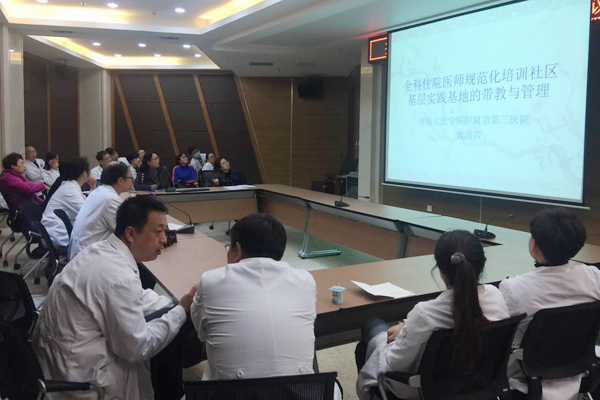 为紧跟国家医改步伐,着力培养全科医师,加大培养合格的家庭医生力度,附属三院作为全科住培基地自去年开始招收全科学员,结合半年来培养过程中发现的问题,在5月6日上午9时召开了住院医师规范化培训全科基地工作会议暨全科师资培训会。医院副院长李晓华、全科基地负责人康晓新主任、全科病区主任韦艳红、基层社区中心主任杨秀华出席了会议,继续教育科及全科的骨干带教教师共计40余人参加了会议。会议由全科基地负责人康晓新主任主持。