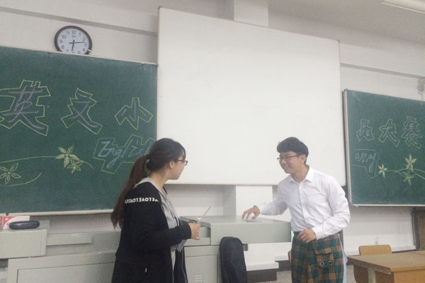 为切实将“三导向”人才培养理念落到实处,加强人文素质培养的内涵体系建设,5月10日晚,外语教研部在教学主楼北区115教室举办了英文短剧小品大赛。外籍教师Dennis、Christine和外语教研部的3名教师担任比赛评委。